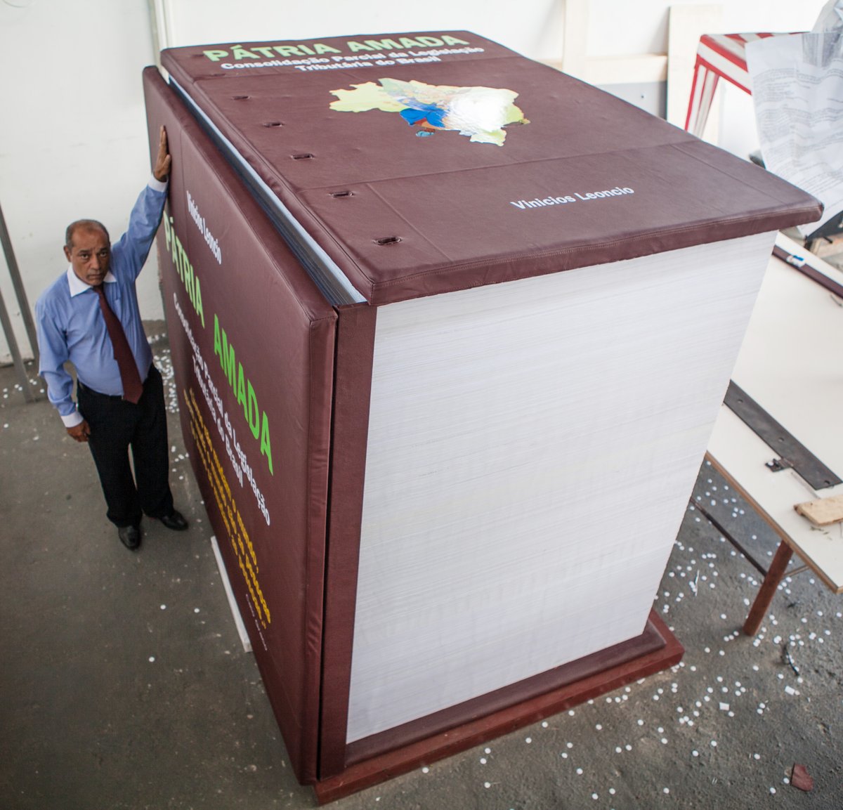 @felipeneto Um advogado decidiu publicar um livro com a nossa legislação tributária editada entre 1988 e 2011. O resultado é uma obra com 7,5 toneladas (o peso de 2 hipopótamos) e mais de 41 mil páginas, com cada uma delas medindo 2,10 metros de comprimento por 1,40 metro de largura.