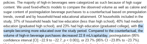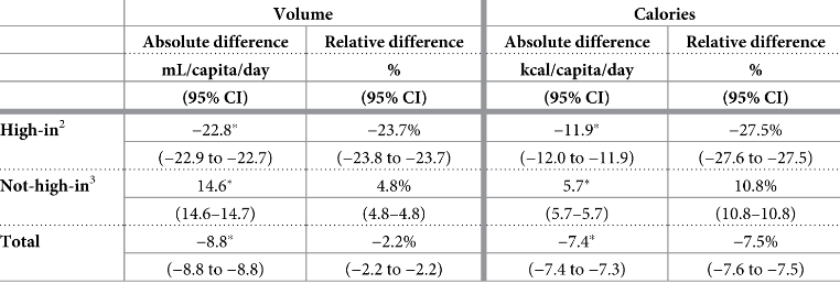 Actual study: Consumption drops 7 calories per person per day.