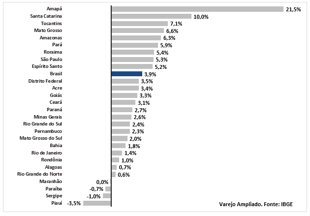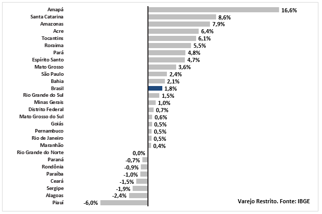 No 2T, destaca-se a recuperação do comércio, depois de fortes quedas no 1T, possivelmente refletindo a volta dos auxílios (e talvez a melhora na 2ª onda).