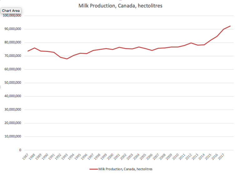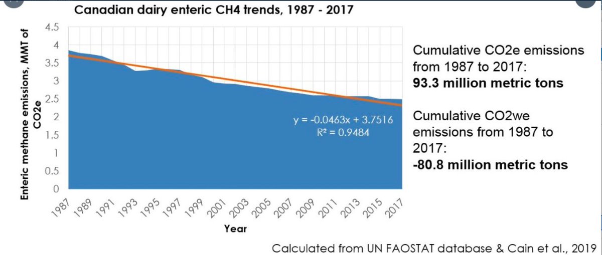 By the same token, we need to give credit where credit is due... The Canadian dairy sector, for instance, has seen a near 30% reduction in CH4 emissions over the last 3 decades. Over the same period of time it increased milk production by about 22%. (h/t @drsplace).