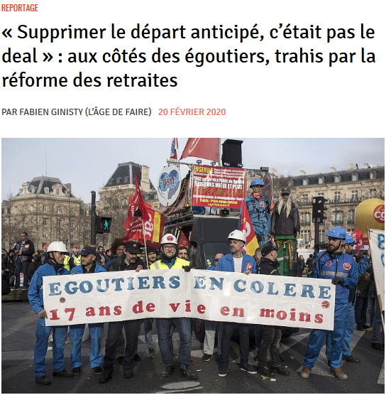 Le surlendemain, Michel et ses collègues sacrifieront une journée de salaire pour aller manifester, comme la grande majorité des égoutiers du pays. Leur seule compensation est menacée par la #reformedesretraites.