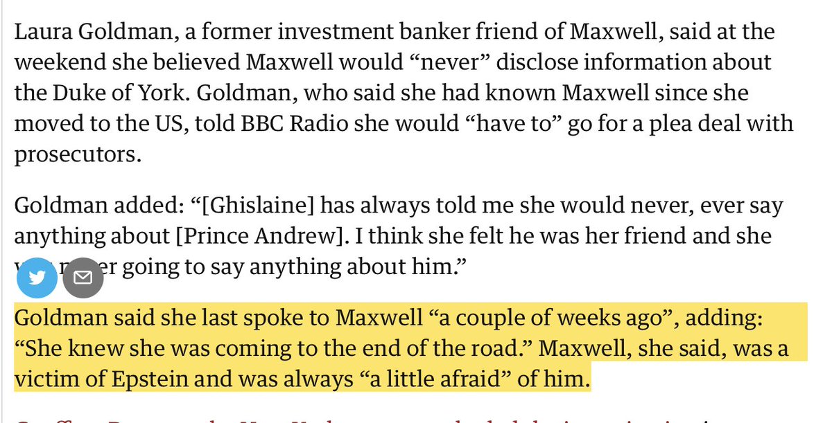 Maria Farmer, @ArtisticBlower, on threats from Ghislaine Maxwell, "There are a lot of ways to die on the westside highway."