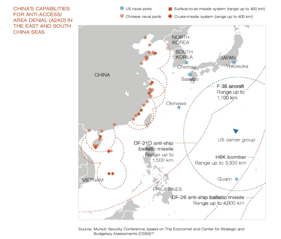 2/4 Overview of #China's capabilities for anti-access/area denial (A2AD) in the East and South China Seas...#GlobalTrends #SCS #Asia Image