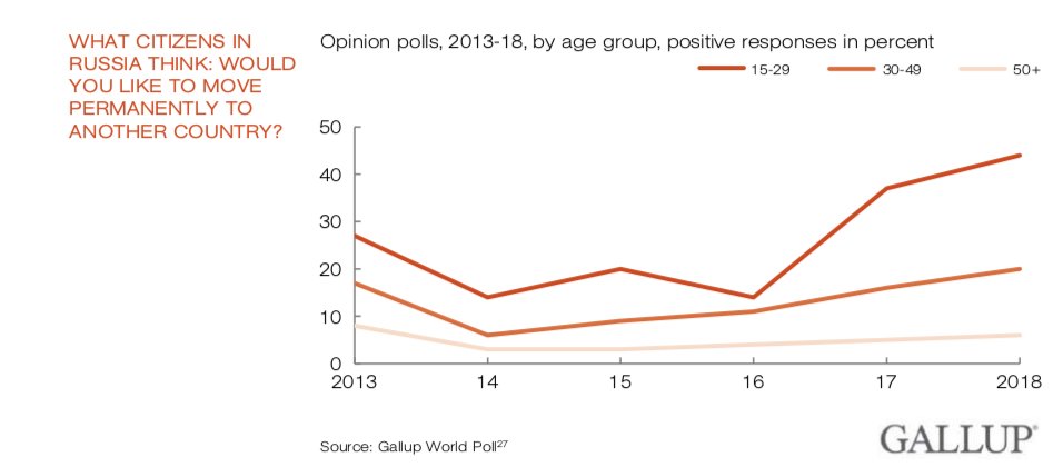2/3 Overview of different age groups in #Russia and their desire to permanently move to another country...Youth looks set on leaving a rapidly ageing nation.. #GlobalTrends#Demographics