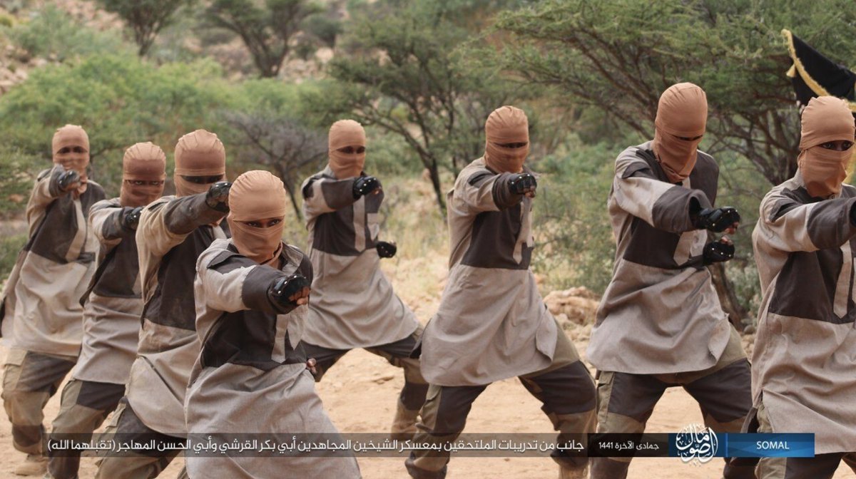 "Wilayah Somal" IS can amplify a dozen kids in cool uniforms to attract more. Their camp is called “Abu Bakr al-Qurashi and Abu al-Hasan al-Muhajir” and is located between Dhaadaar and Bashaashin in Puntland. IS Somalia doesn't understand tactics or geolocation. Expect drones.