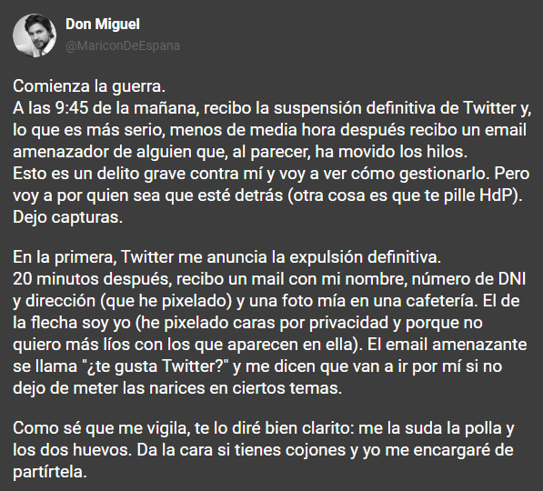 Le han dicho que se abra otra cuenta de Twitter y deje estar lo de las amenazas.