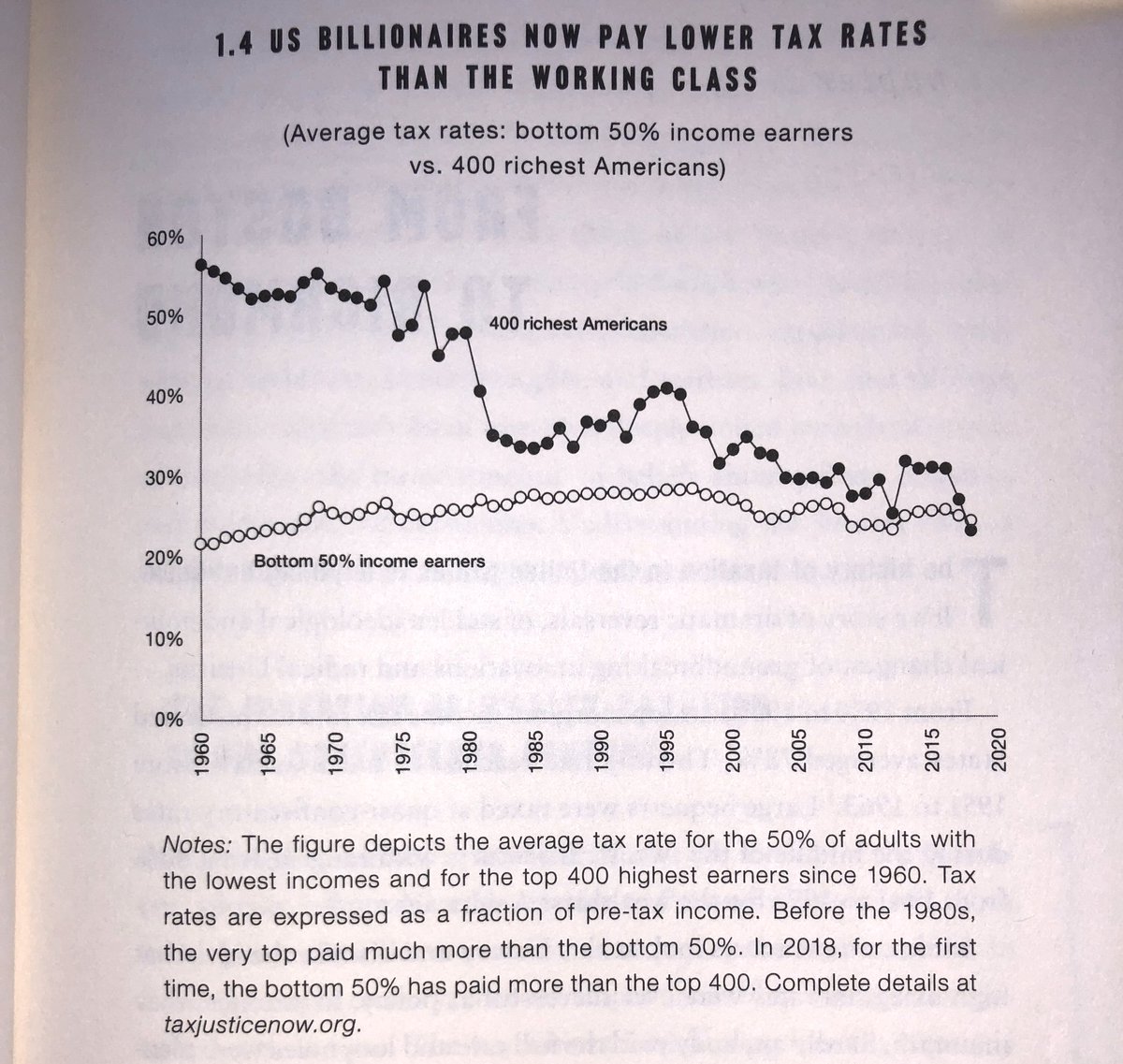 —"In 2018, following the Trump tax reform, and for the first time in the last hundred years, billionaires have paid less than steel workers, schoolteachers, and retirees."