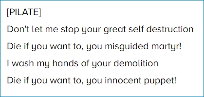 Brings to mind the lyrics of "Jesus Christ Superstar" where Pilate tells Jesus: