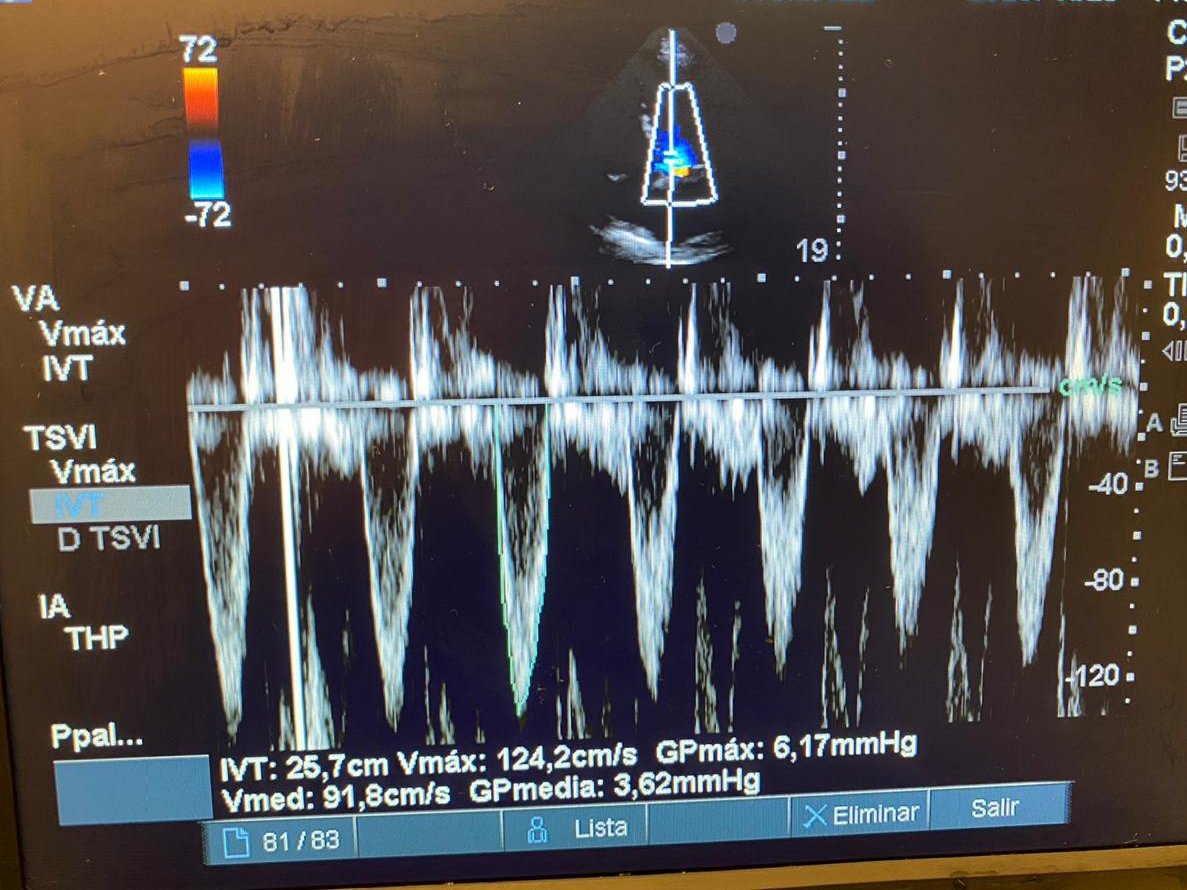 Left Ventricle Outflow Tract - Velocity Time Integral (LVOT-VTI) 25 (normal 18-22), TAPSE 26. RV/RA not dilated, no TR (7/11) ImageImage