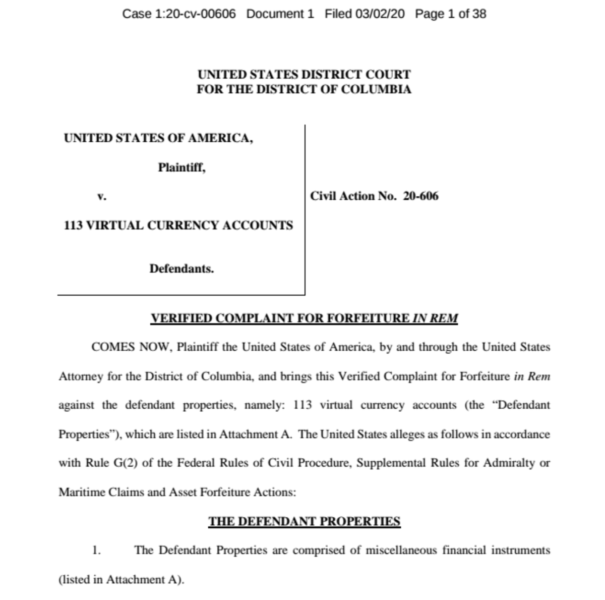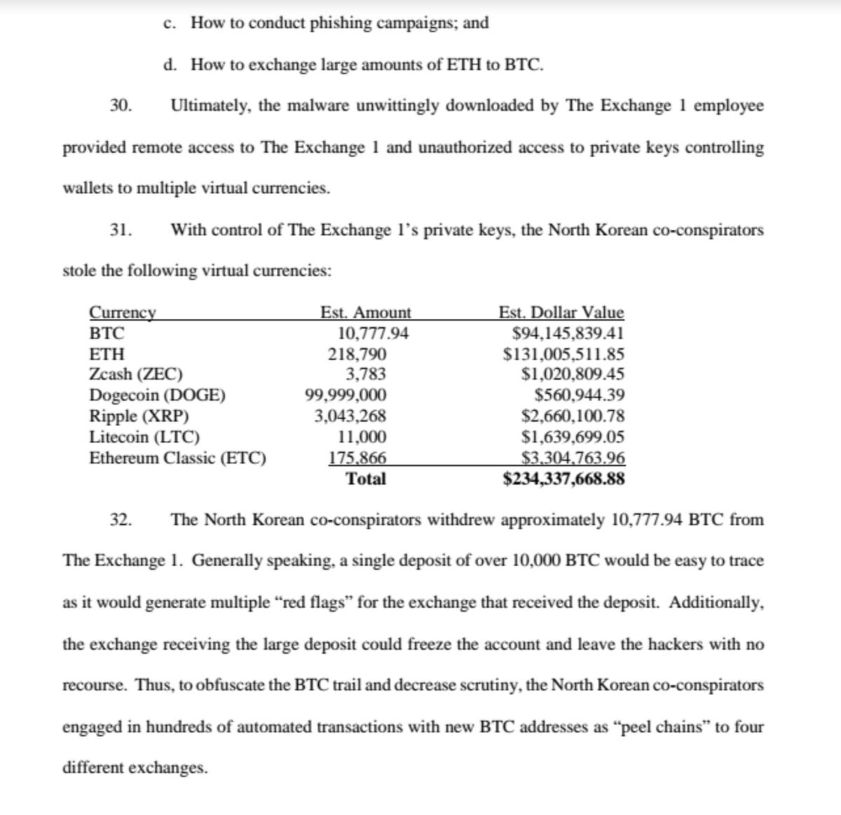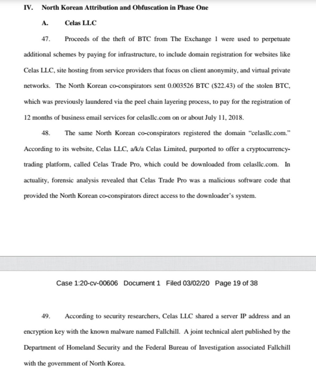 US brings In rem forfeiture claim vs. 113 #cryptocurrency accounts based on an investigation by @IRSnews , @DHSgov & @FBI into money laundering/MSB violations; alleges "peel chain" (new term!) transactions used by North Korea to disguise funds; details NK hacks of exchanges/1