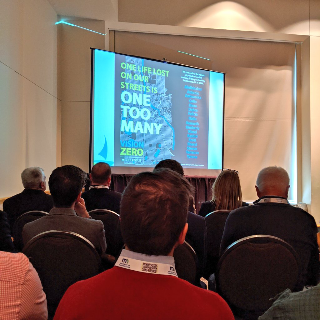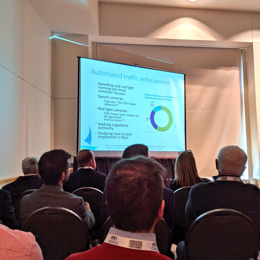 At the Minnesota Transportation Conference, heard about #visionzero from @EthanFawley from the City of Minneapolis and MnDOT's safety engineer. Mpls is making rapid improvements to dangerous corridors, announcing new speed limits next week, and studying automated enforcement.