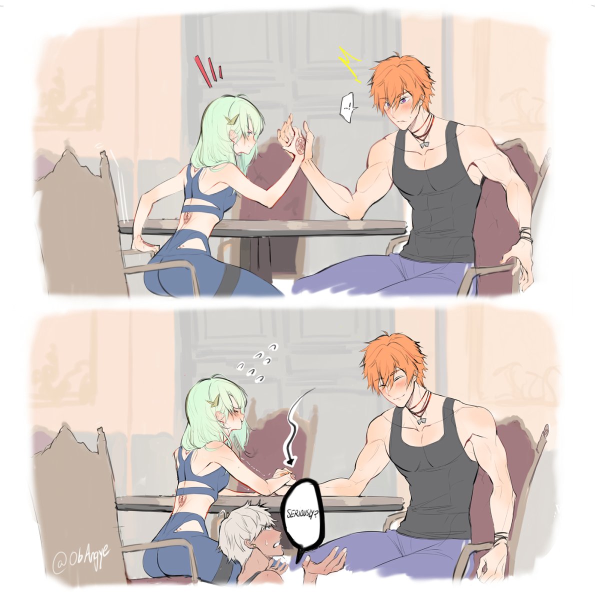 Arm wrestling after workout, Yuki (generic unisex MC name) wanted to participate too and...#obeyme #obeymeshallwedate #obeymejp #obeymemasters
