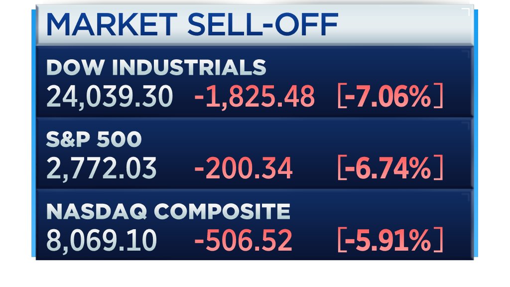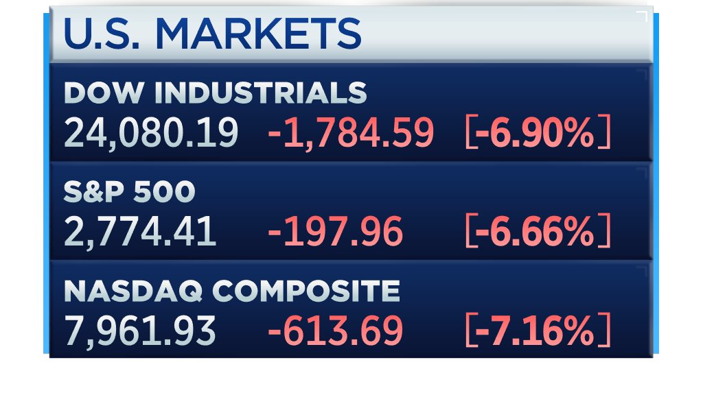 BREAKING: Dow Jones Industrial Average closes down more than 2,000 points, its worst point drop ever on record; S&P 500 and Nasdaq plunge more than 7% cnb.cx/331wMqJ