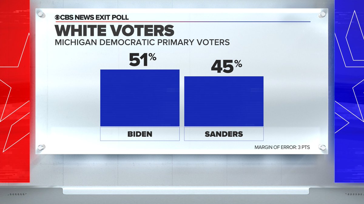 Biden's margin much smaller among white voters, per exit polling in #MichiganPrimary