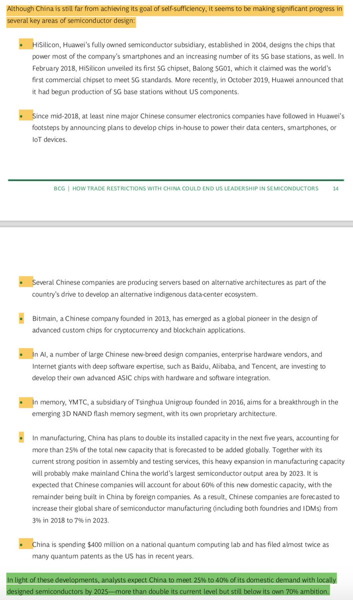 6/8 Overview of #China's moves in #Semiconductors as they seek increased decoupling from #US industry...Self-sufficiency may be someway away but alternatives to US options are already in place which potentially leaves the US industry as the loser as it loses a major market...