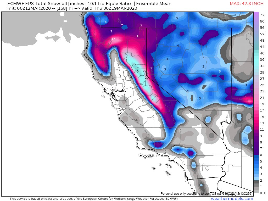 For those looking for some good news this week, I do have some from a California weather perspective: a sudden burst of potentially quite heavy Sierra Nevada snowfall (along with widespread rain elsewhere) is likely this weekend into early next week. (1/3) #CAwx#CAwater