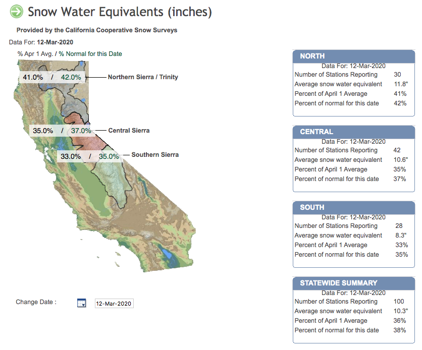 Clearly, this is very good news! It is, however, still important to keep these numbers in perspective. Snowpack currently at only 38% of avg., & is "missing" ~24 *inches* of liquid SWE. Even after upcoming big snowfall, we'll still be massively behind. #CAwx#CAwater (3/3)