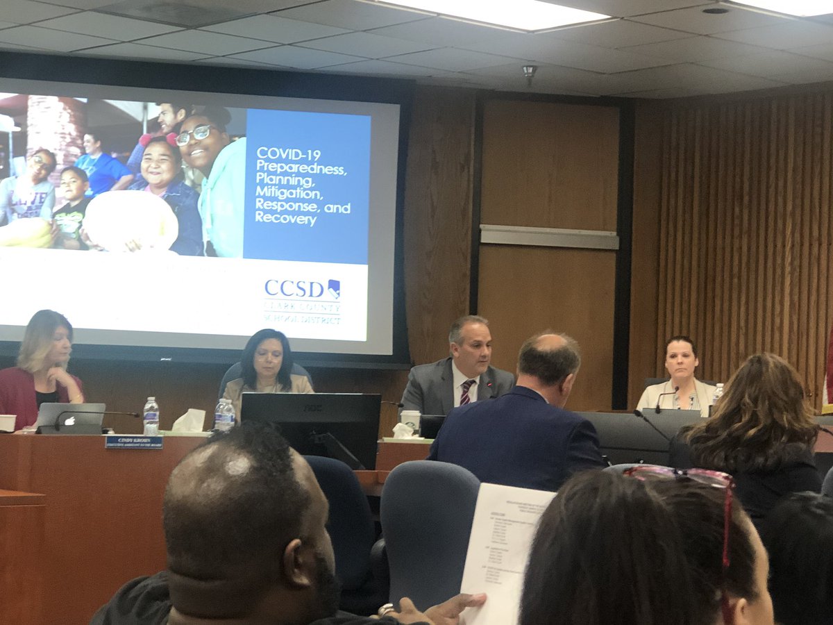 Happening Now: @ClarkCountySch is holding a regular board meeting tonight, after administrators announced the suspension of all extracurricular activities/events.