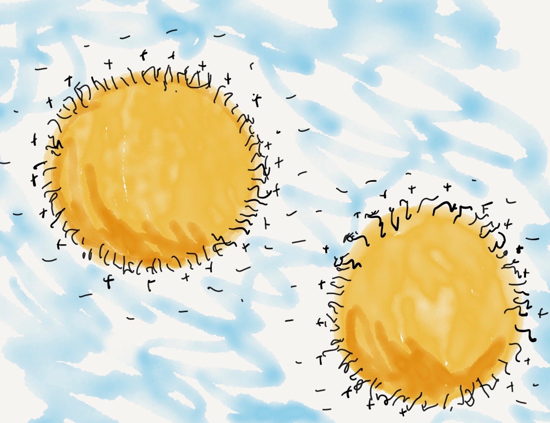 23a Thermo fans: you'll note in the preceding image I broke out DLVO theory to create an anion double layer around the presumptively + charged choline. Haven't personally checked the pKa on this, so if you have some values, would appreciate knowing which charge is more correct
