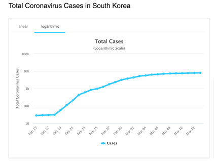 2/n China’s total number of cases on the logarithmic scale has reached an asymptote. Only other country which seems to be reaching such a limit is South Korea.