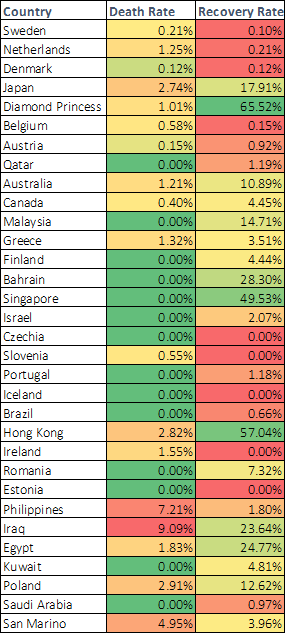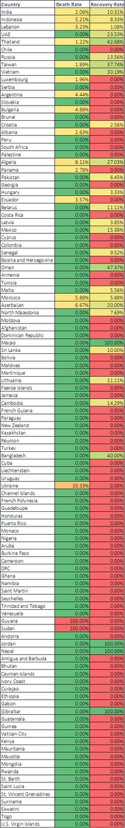 13/n Note the world average for death rate is 3.72% and recovery rate is 47.60%.