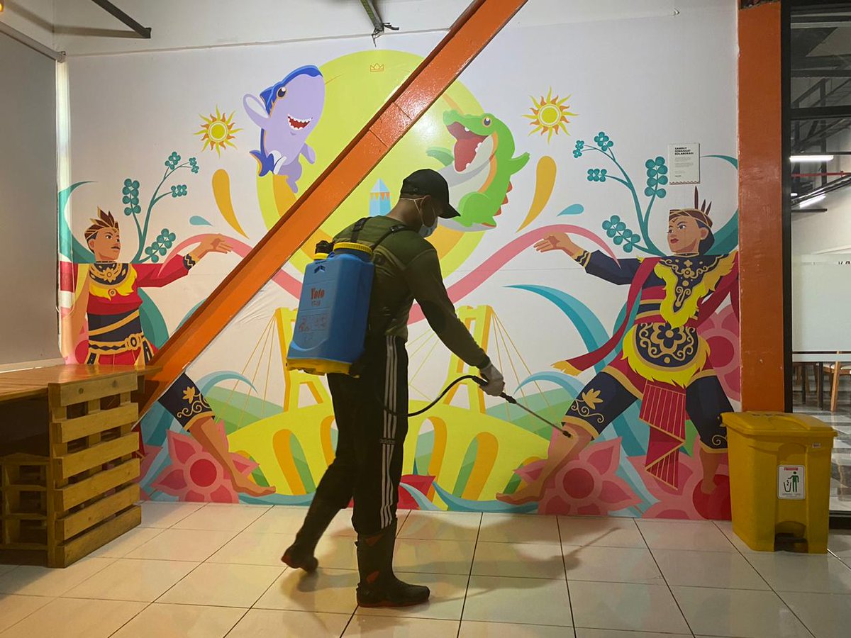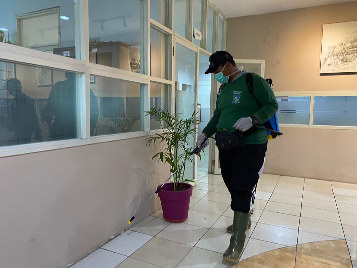Hari ini, lebih dari 100 petugas disebar untuk disinfeksi di ruang publik di Surabaya.