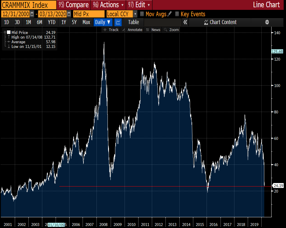 La mezcla mexicana ayer cerró en US$24.19. Estamos en niveles cercanos al mínimo (US$18.90). Y si quitamos la debacle de 2015-2016, no se veían esos niveles desde 2003.