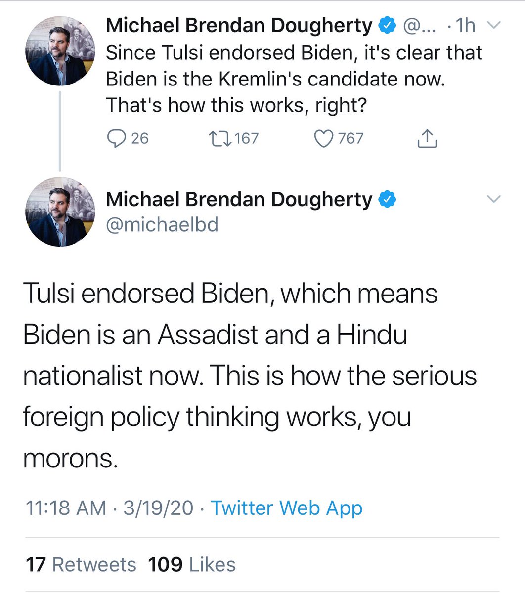 My reality-based preference was for Bernie to be the nominee and pick Tulsi as VP, and that's not happening. I'm sad at how the primary turned out, and I'm sad that we're in a pandemic