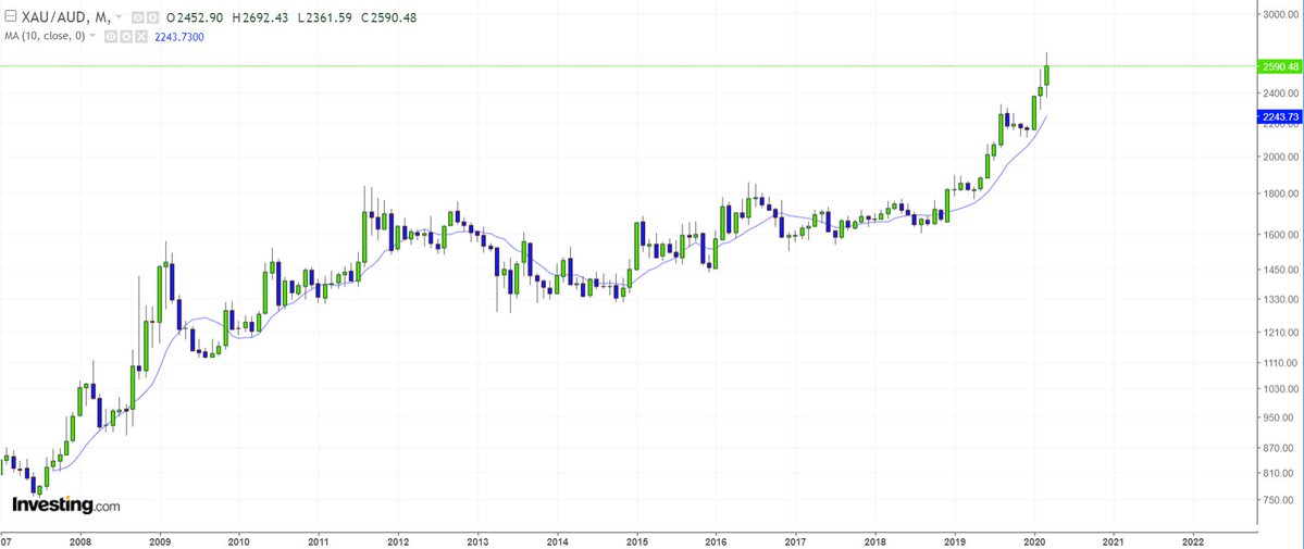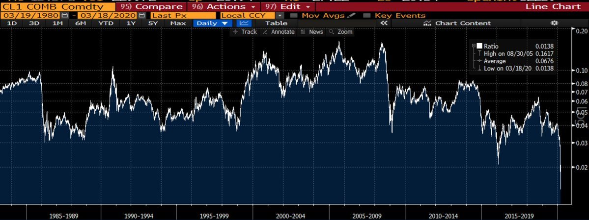 ۱. اولا کاهش قیمت #طلا نسبت به سایر کالاهای اساسی مشابه مثلا مس و آلومینیوم و فولاد و ... بسیار کمتر بوده. نمودار نسبت مس به طلا نشان میدهد که این نسبت بسیار کاهش داشته و به پایینترین سطوح تاریخی رسیده. بازدهی اوراق نیز در پایینترین سطوح است/۳