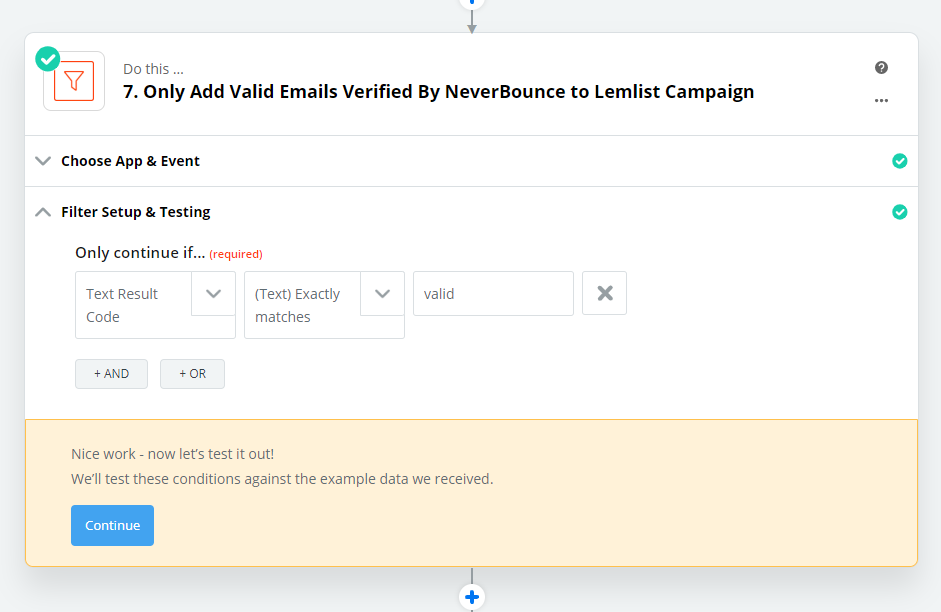We then only push the next step in Zapier if the email results come out marked as VALID.