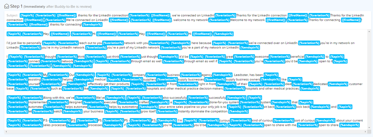 I like to make the 1st email as personalized and spun as I possibly can for max deliverability.