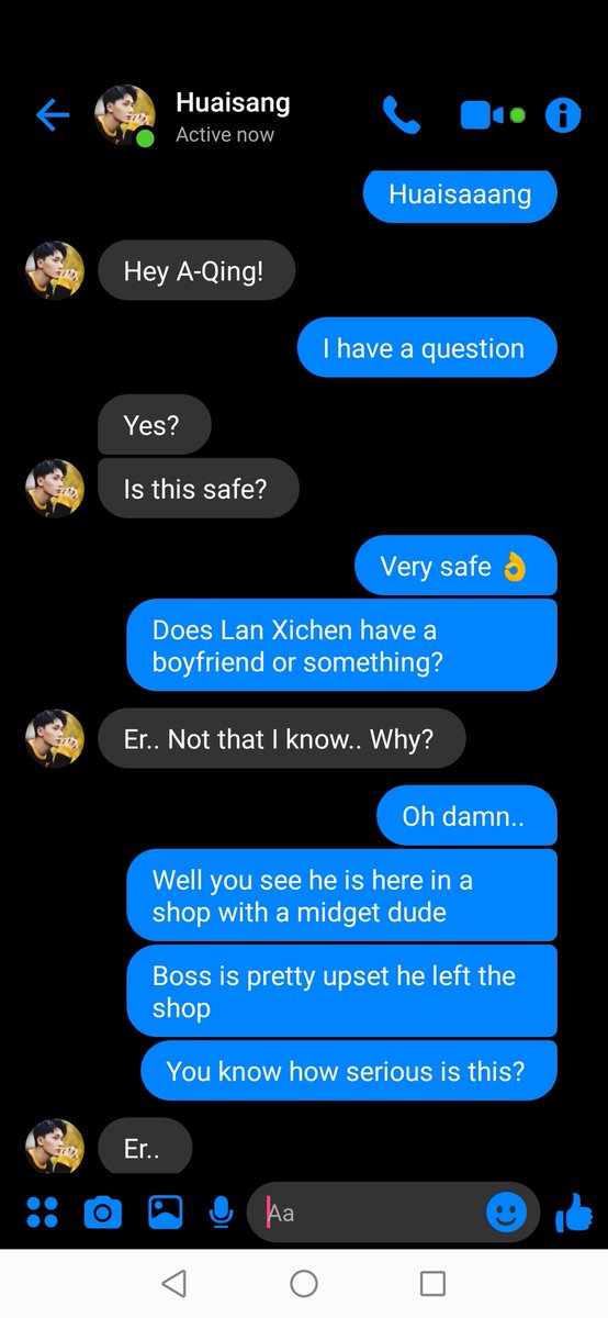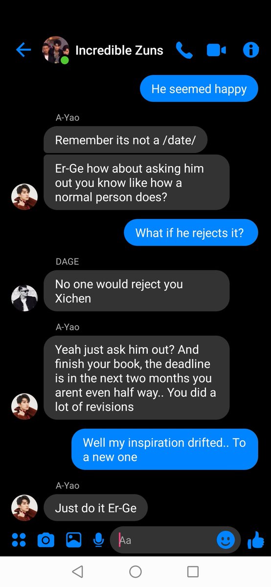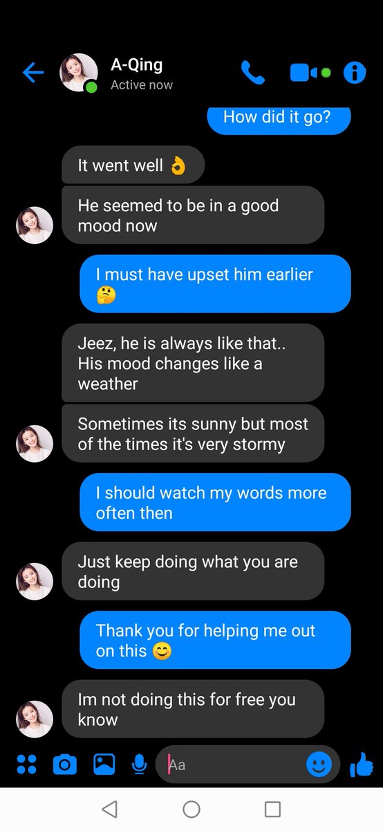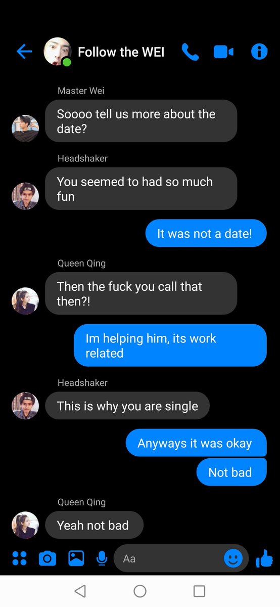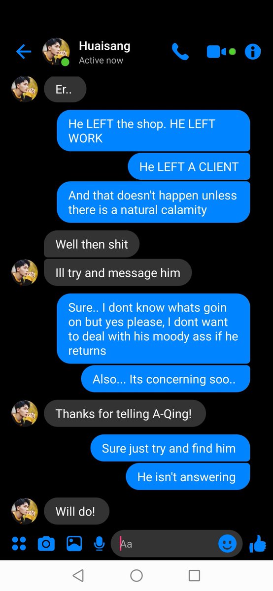"Dont stress yourself over it Boss, Im sure he doesn't like you" A-Qing smiled with a shrug "I mean who would even?"