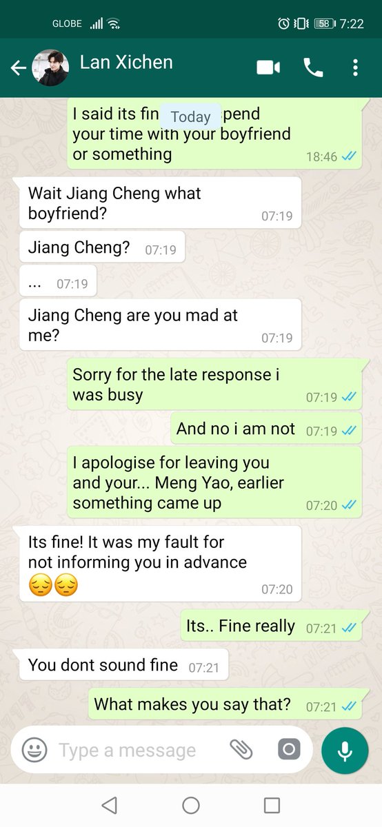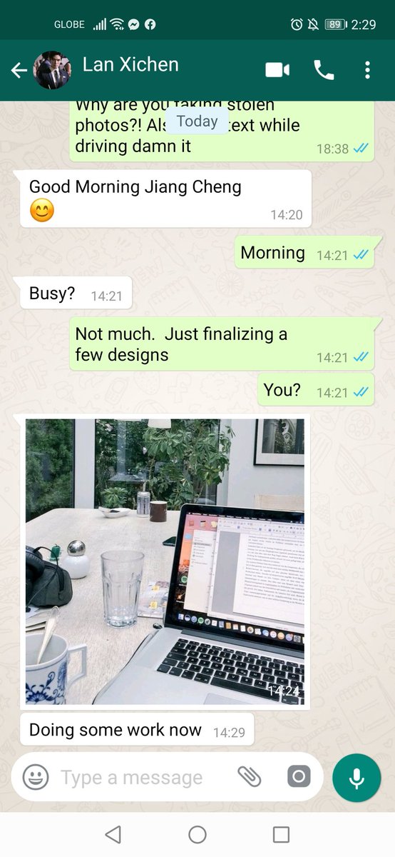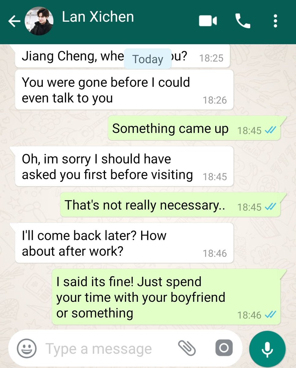 Jiang Cheng stared at his screen for a moment. The question made him pause and look back at the last three weeks where they spent time together, and the work they made, he would be lying if he says he didn't miss it.