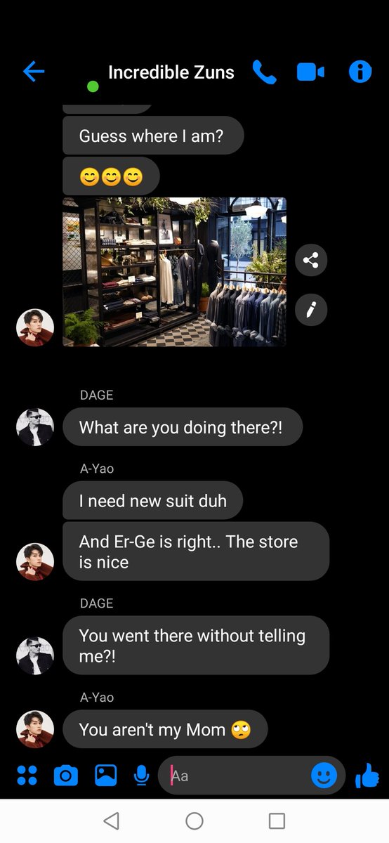 "I thought you aren't coming in today, I wanted to buy a suit for Dage.. Dont tell him, he would just fuss about it" he murmured.