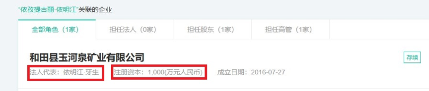 和英提扎合伙在浦东开公司的依明江·牙生,那位共匪公安局长,背景绝非简单,请看本推前面介绍!那经历整个就是纯种维奸!不知为共匪做了多少丧尽天良的邪恶魔鬼行径才爬到那个位置~!还有!那个维奸,依明江家族,可不仅仅是共匪高官,还有一家和田玉矿石公司!