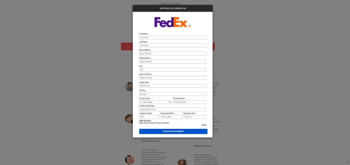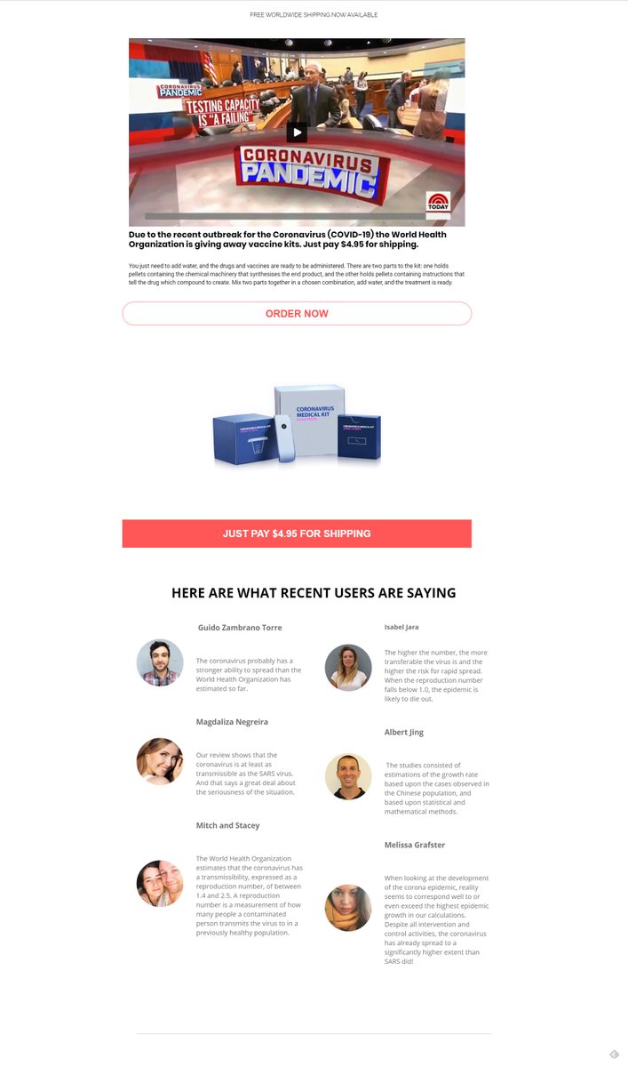 This site is promoting fake WHO vaccine kits for a $4.95 shipping charge.