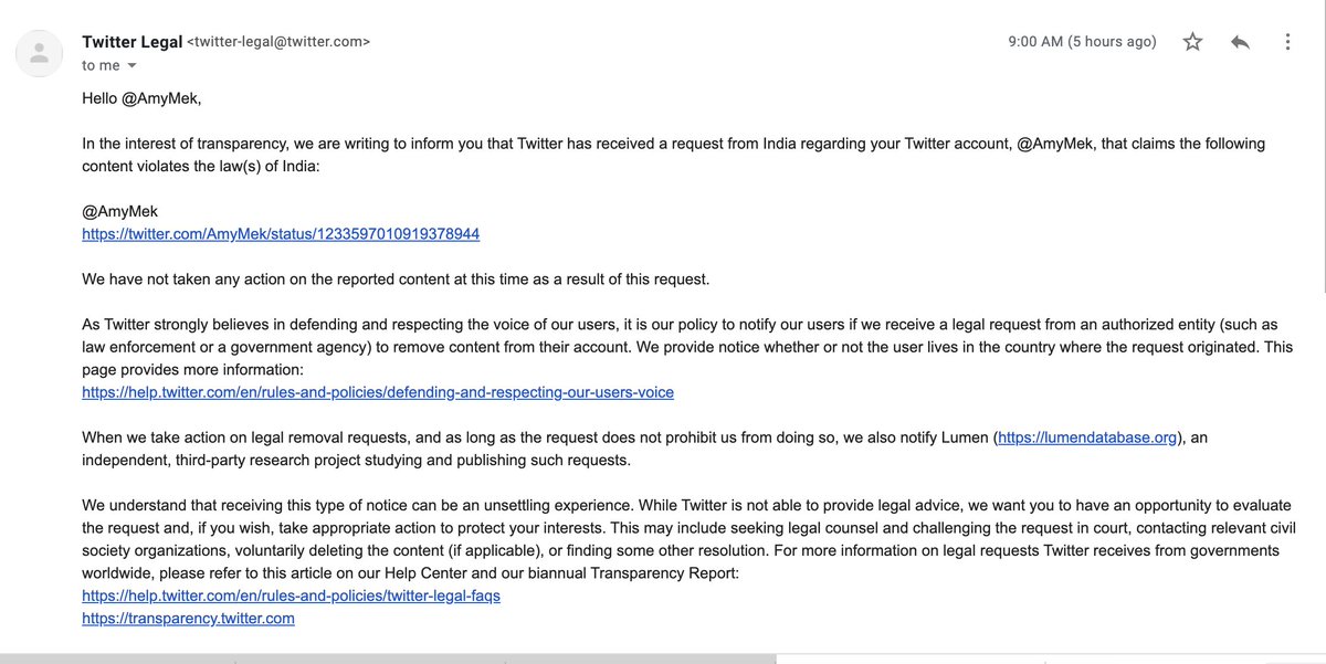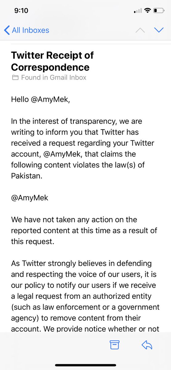 Next, Twitter me a legal notice saying jihadists in India are fighting to have me legally silenced
