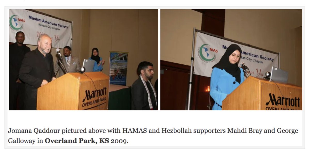 We already showed the 2009 photo of Jomana Qaddour and Salah Sarsour together at a Muslim American Society (MAS) fundraiser in Overland Park, Kansas - the same radical circle tied to the Viva Palestina convoy effort.