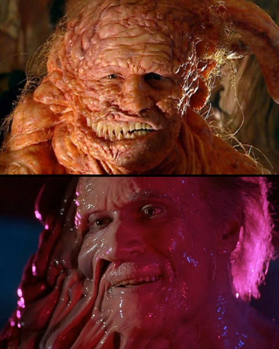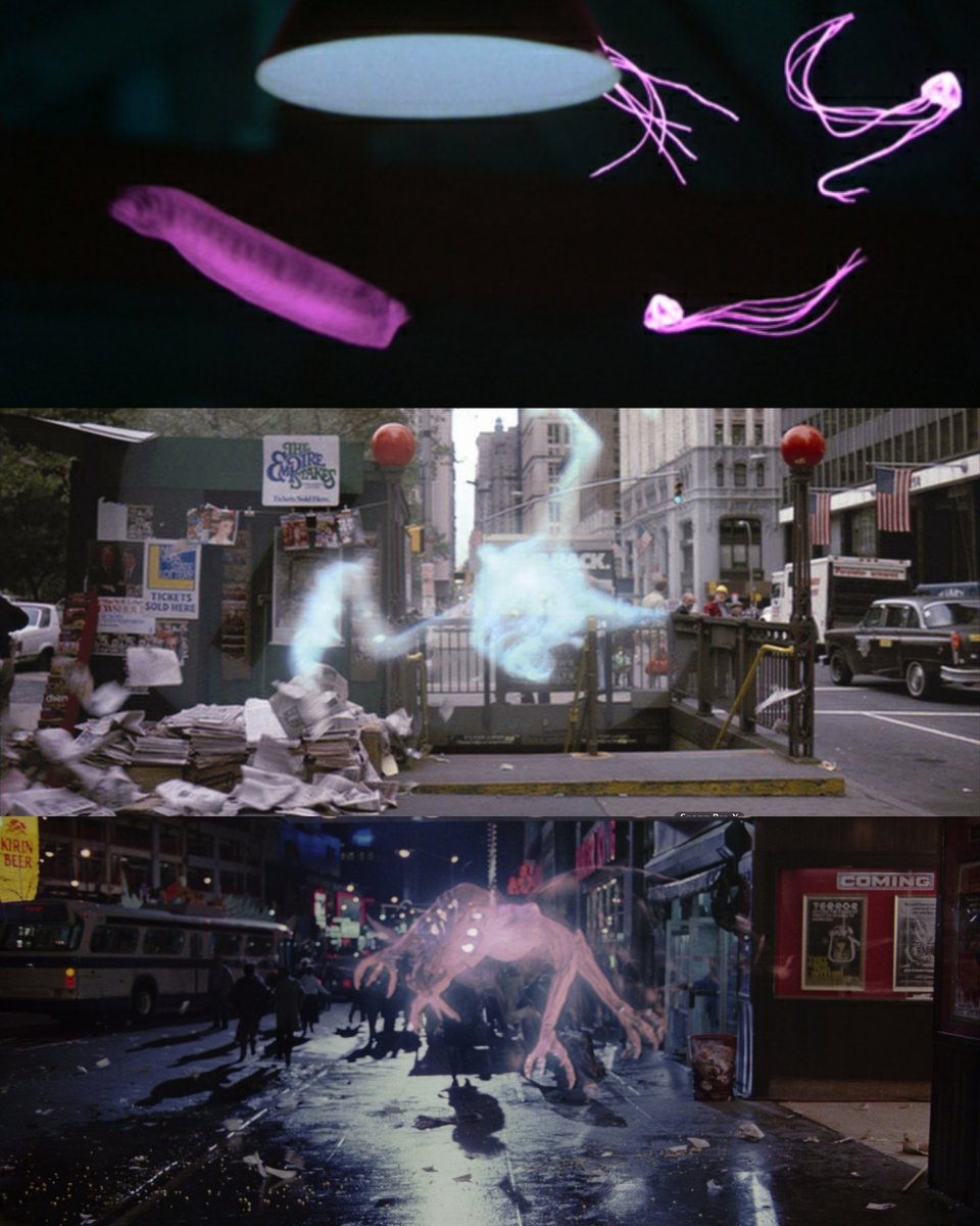 La forma en la que están hechos los efectos de las criaturas, o más bien "la fauna" interdimensional recuerda mucho a los de CAZAFANTASMAS (1984), la segunda parte también, y además incorporaba moco Rosita que podría aparearse con varios fluidos de esta. #FromBeyondHorrorLosers