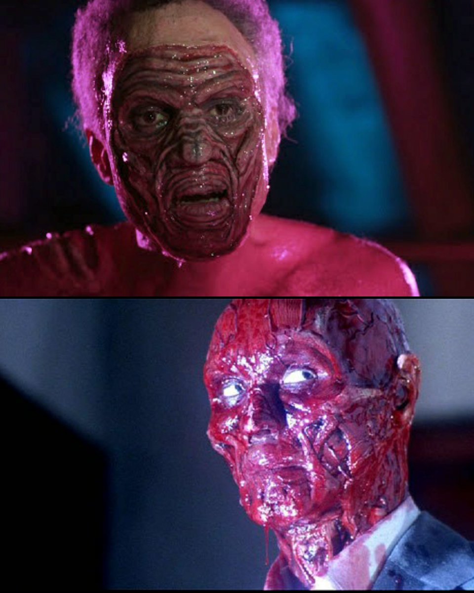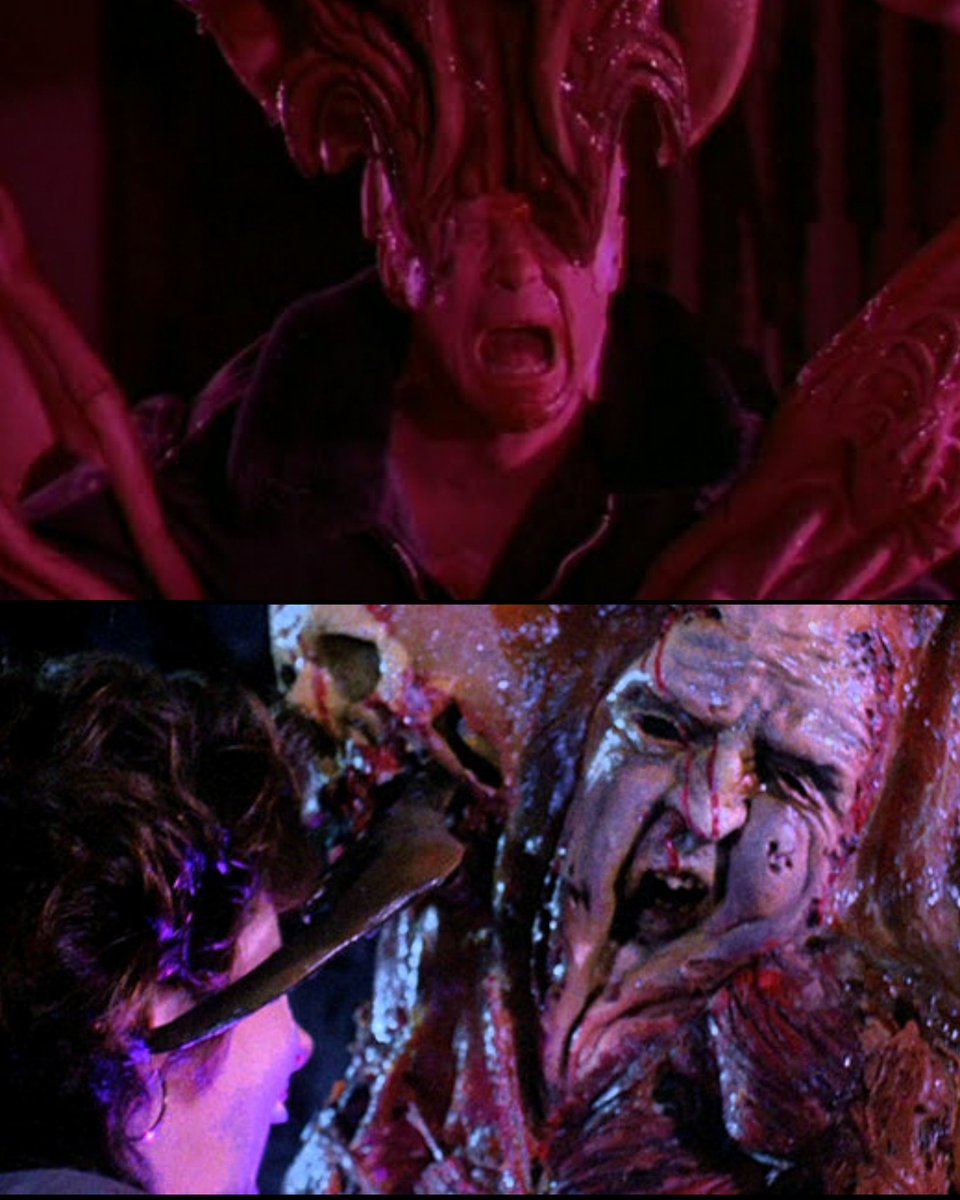 El Pretorious-monster deja ver más fijación con THE THING, pero también con los efectos oníricos y locos de Freddy en la tercera NIGHTMARE ON ELM STREET. #FromBeyondHorrorLosers