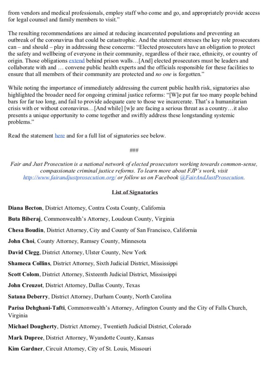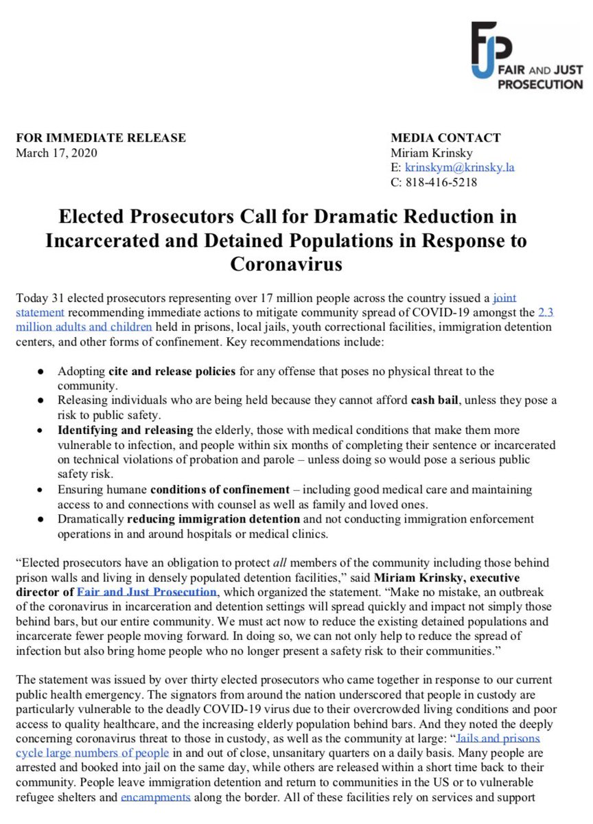 I've joined 31 prosecutors calling for a reduction in the number of people in jails & prisons who are not a threat to public safety: salon.com/2020/03/21/pro…