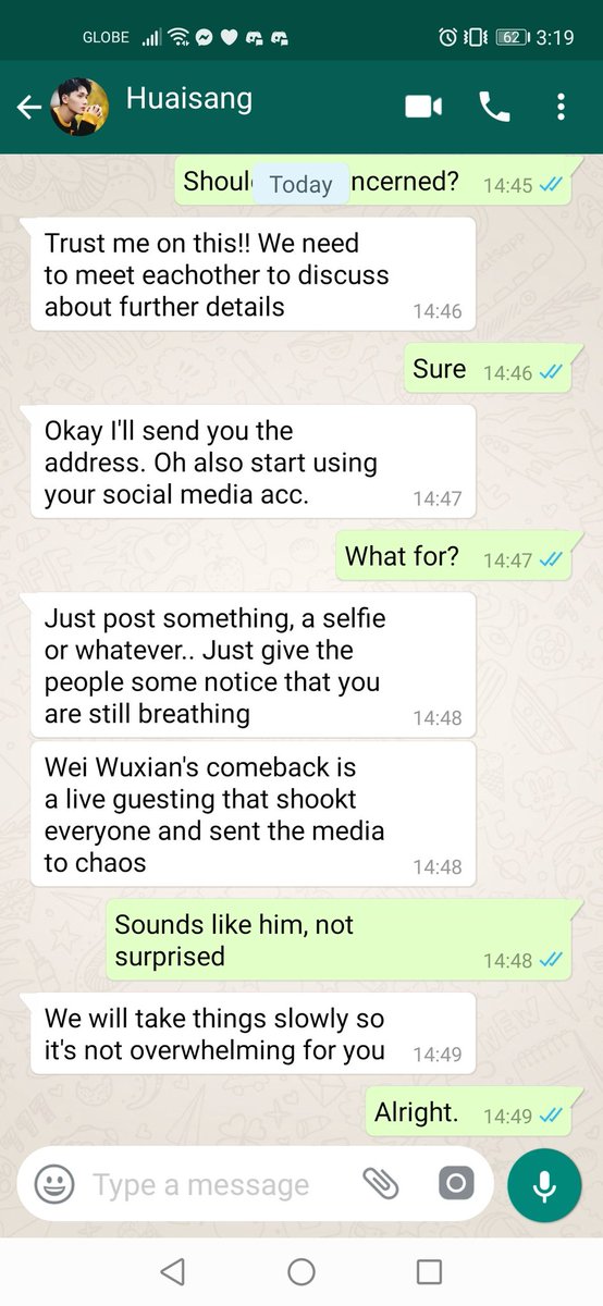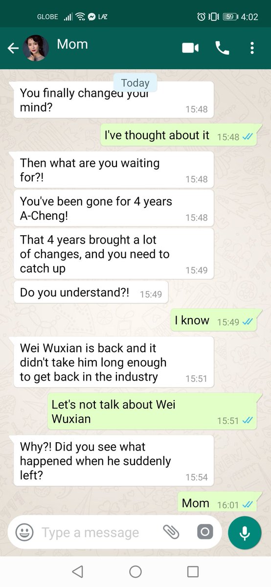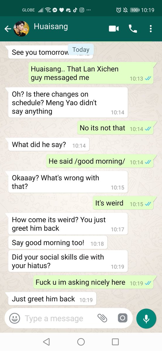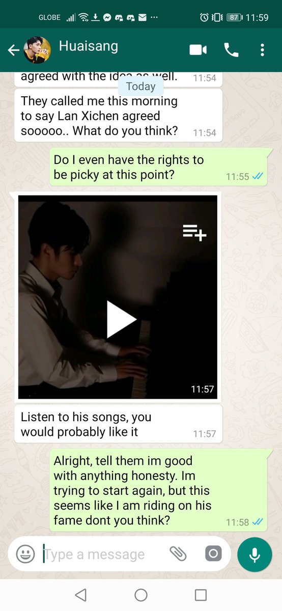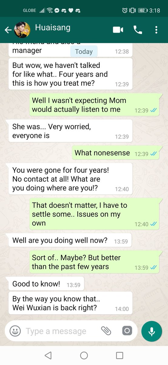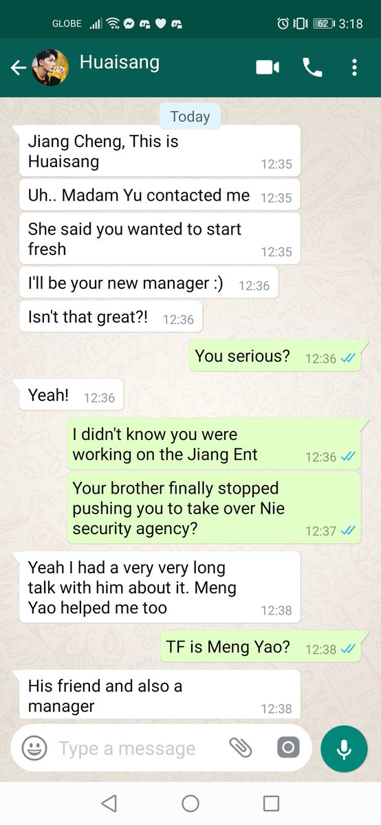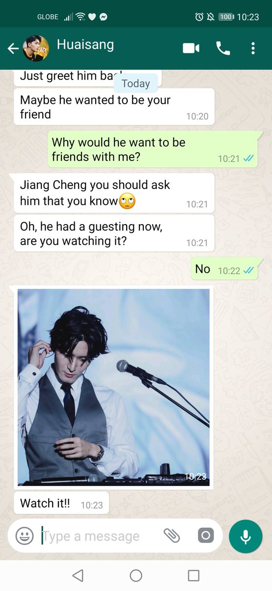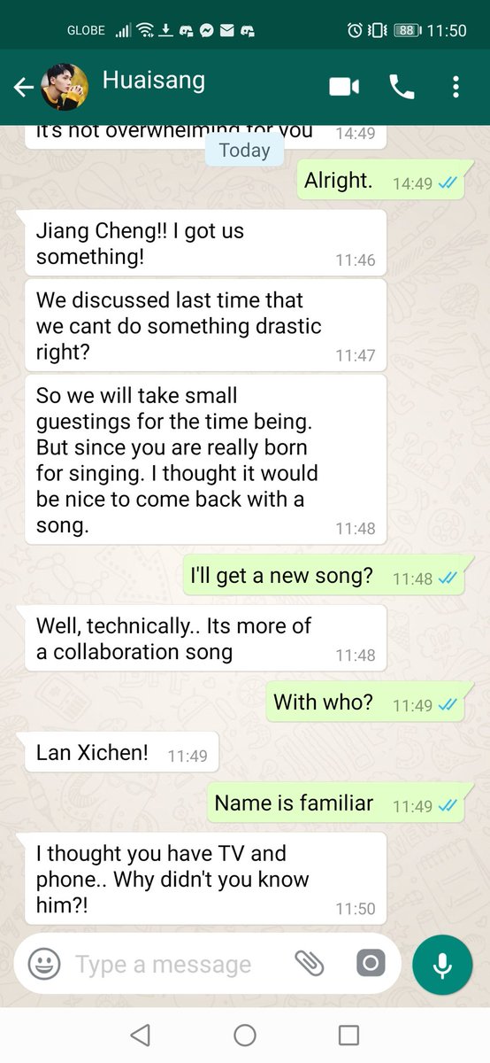 JC stared at the unregistered number and raised a brow. Normally he doesn't respond to unknown number but Huaisang must have given it to some important people so he decided to respond.