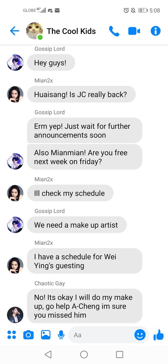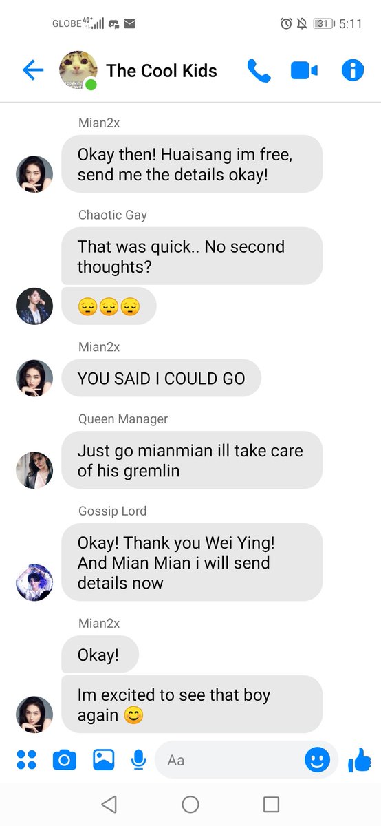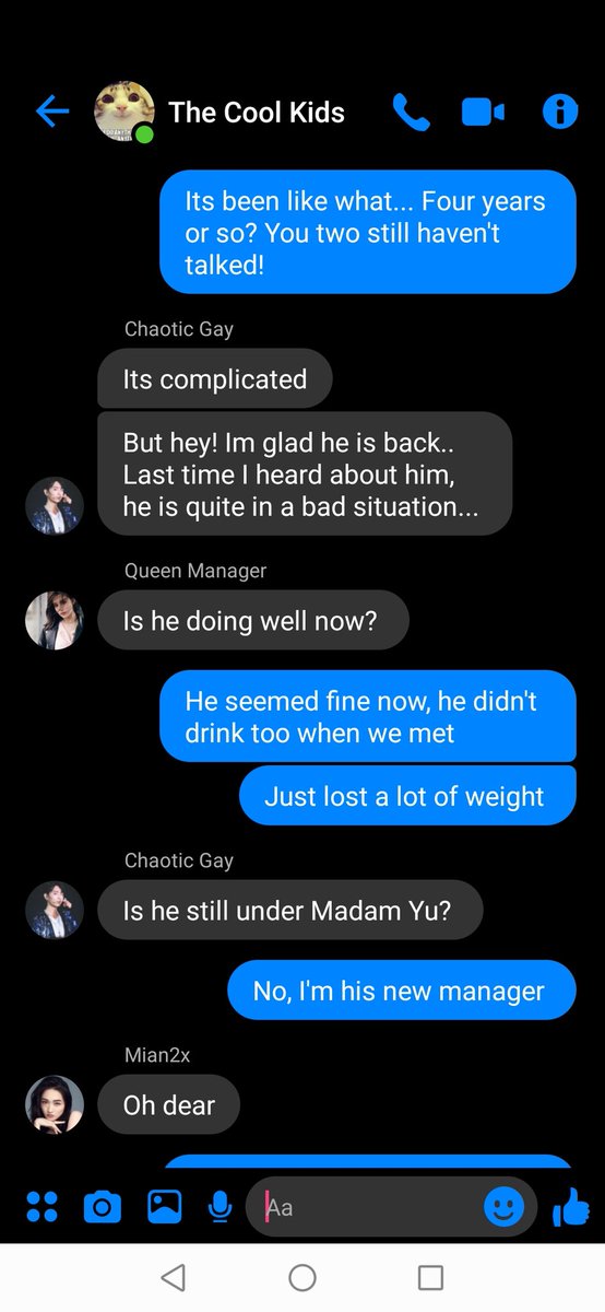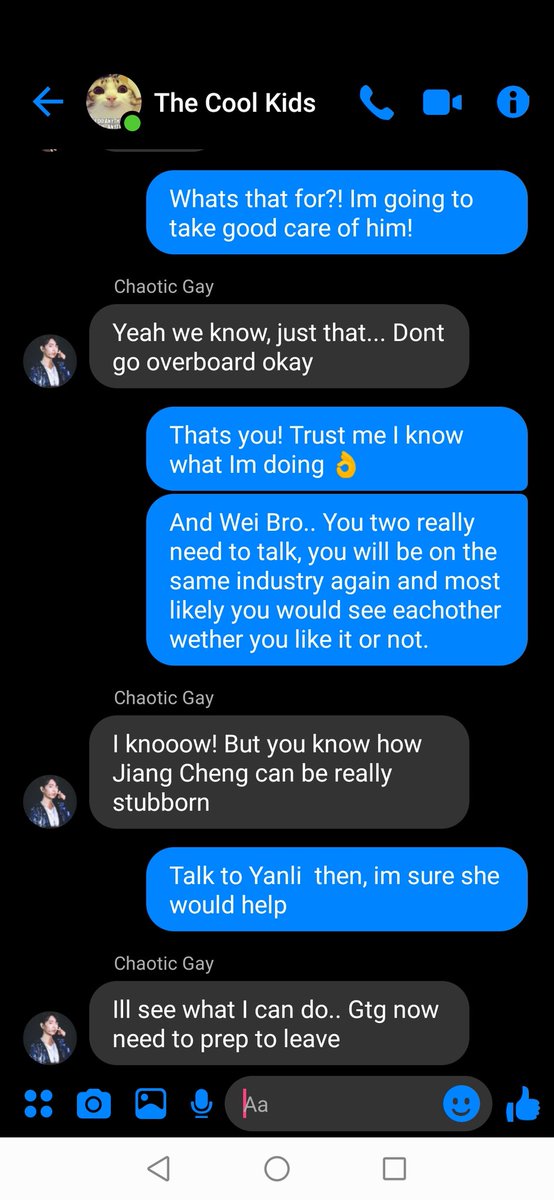 "Its okay! Im good, besides I think I might go ahead first, Wen Qing called"