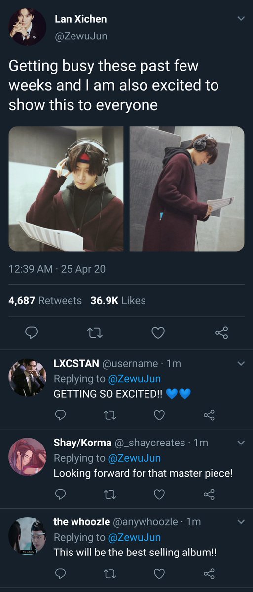 shook his head at LXC before he spoke. "Anyways, Huaisang and I talked, the recording will be done tomorrow like wise with his other songs, you can come same schedule as today.. Also we were thinking if we should do a music video" he glanced at NHS.