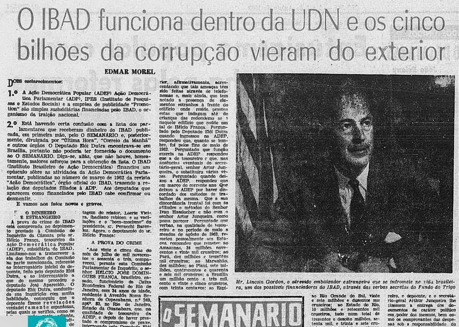 7/10/62- Ocorrem eleições parlamentares e para governador em alguns estados. O destaque fica pela atuação ilegal do Instituto da Ação Democrática Brasileira (IBAD). Estima-se que este recebeu U$5 milhões do Departamento de Estado dos EUA para financiar candidatos anti-Goulart.