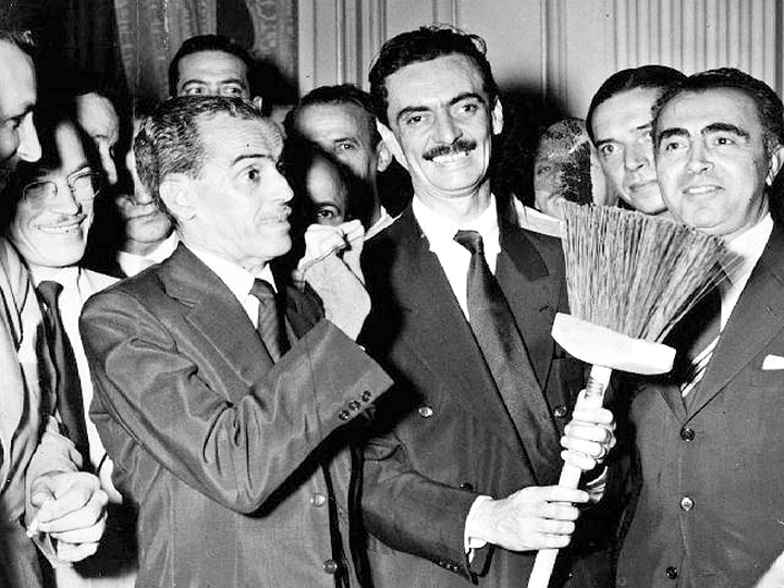 25/08/61- O presidente Jânio Quadros declara sua renúncia ao cargo. A razão? Acreditava que o povo aclamaria para que ficasse no posto e isso lhe daria mais poderes para governar. O povo ficou em silêncio. Pela lei, o seu vice, João Goulart, assumiria a presidência, mas...