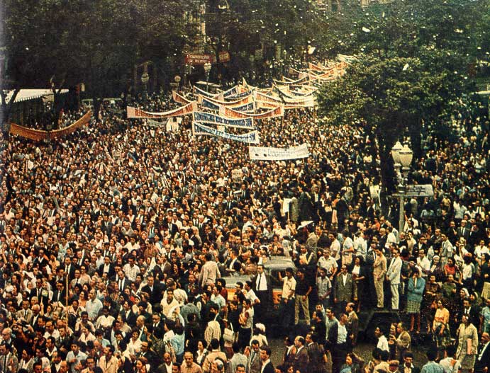 19/03/1964- Em São Paulo, foi realizada a Marcha da Família com Deus pela Liberdade. Estima-se que até 500 mil pessoas foram às ruas. Entre estas, diversos líderes políticos anti-Jango. Com o tempo, se descobriu que dinheiro foi injetado nos grupos que organizaram os atos.