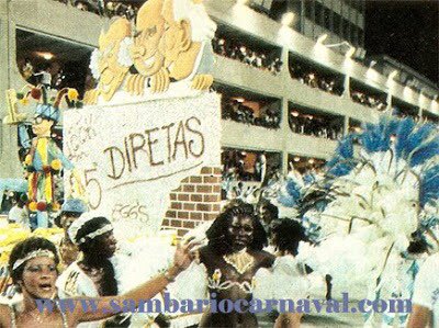 Em 1985, em período próximo ao fim da ditadura, a provocativa Caprichosos de Pilares, sob a batuta de Luiz Fernando, levou à Sapucaí “E por falar em saudade...”. No samba: “diretamente, o povo escolhia o presidente”, evocando novamente as eleições diretas e a importância do voto!