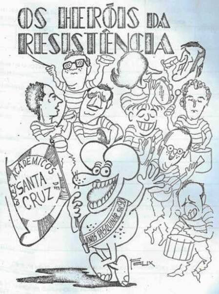 Em 1990, a Santa Cruz rememorou os tempos de regime por meio de "Os Heróis da Resistência" em um de seus sambas mais conhecidos. A escola exaltava o periódico O Pasquim, jornal alternativo que fazia oposição ao duro regime, famoso por suas entrevistas com artistas e intelectuais.