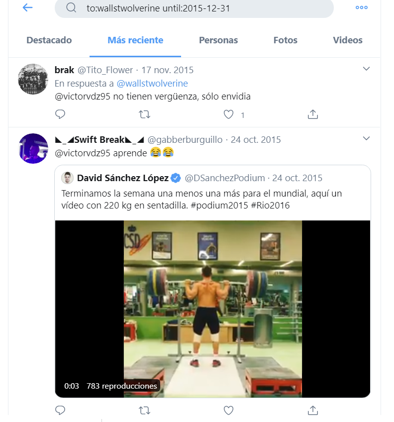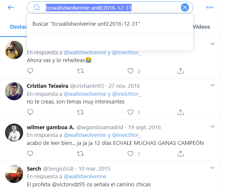 e iremos avanzando año a año y comprobando si existen tuits o respuestas a esa cuenta y a que nombre responden